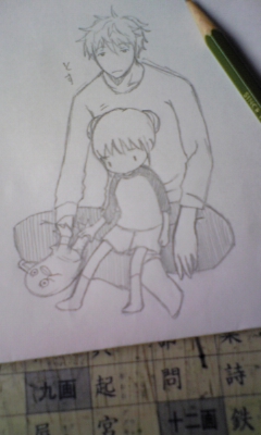 画像は小岩井親子を万事屋親子でパロった落書き。いつだったかここで語った万事屋現代パロ話まだ諦めてないっていうね。ぱちが大学通学の為、上京、アパートの隣が銀神親子っていうやつね。銀新て萌えたぎると万事屋ファミリー萌えもきて、その度に現代パロのマンガか小説書こうと思うんだけど、なかなかまとまらないっていう。部分的なシーンしか思い浮かばないんだよなぁ。ひとつのストーリーにならないっていう。この際、書きたいシーンだけ書くか。