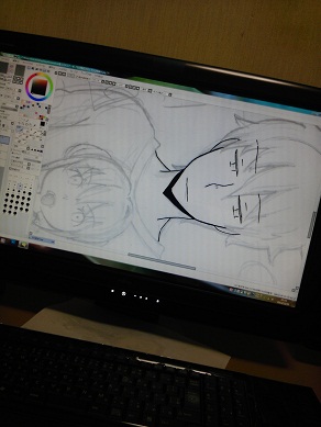春コミに出すコピ本の表紙をあーでもないこーでもないと模索中です。春だからパステルカラー使ってちょっとほのぼのとした感じとかどうかなぁと思ってるw上のはラフに色をざっと付けたものです。本番になったらもっとちゃんとやるぜ☆
