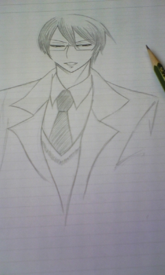 落書き:糸色家三男の命さん(なんちゃって耽美風)画像遠目なのでわかりづらいんですが、コレ実際すごい睫毛バッサバサです(笑)私が耽美系とか目指すとギャグにしかならんのが悲しいところやね。
