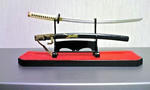the・虎鉄っちゃんミニ!!!友人に頂きました!!!...っっっやべぇ!!!/////マジかっけェ!!!!//////(鼻血ィイイイ)なんかTVの上がめっさカッコイイんだけど!(そう、実は虎鉄っちゃんの下にあるのはTV..汗)ミニといえどもリアルじゃ..///んで、ちょいといたずら。調子に乗って、この刀で「えぃっ♪」と寝てる愛猫に切るマネしたら、猫にまじギレされました..奴は『虎鉄っちゃんミニ』より鋭いモノを持ってるからね。危険だからね。もう少しで流血沙汰だよ、危ねぇ(汗)